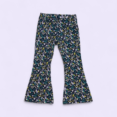 Flared broek happy floral (op zwart)