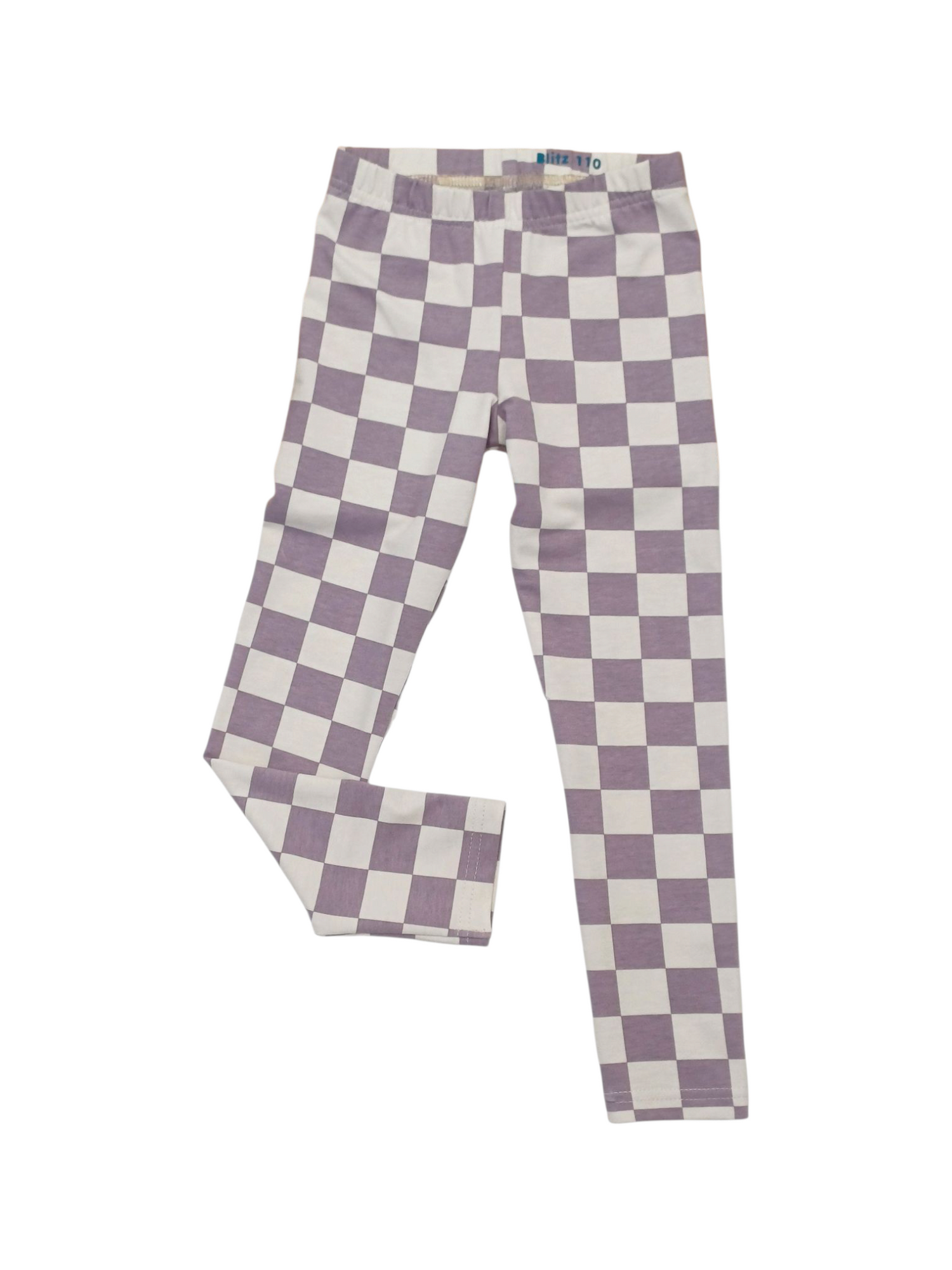 Legging met stoere blokjes print in de kleur dusty lilac. Een leuke basic die niet mag ontbreken in de garderobe van je kindje. De leggings hebben elastiek in de taille.
